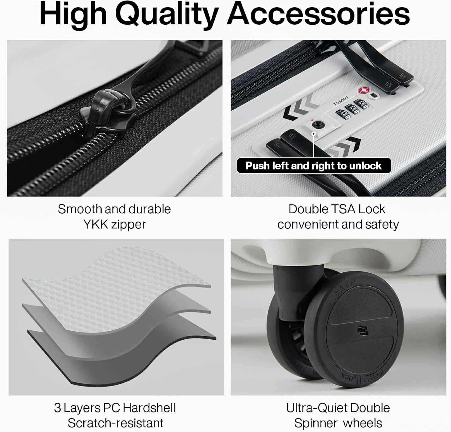 Smooth & Secure: Durable YKK zippers, TSA-approved locks, and 360° spinner wheels for effortless travel.